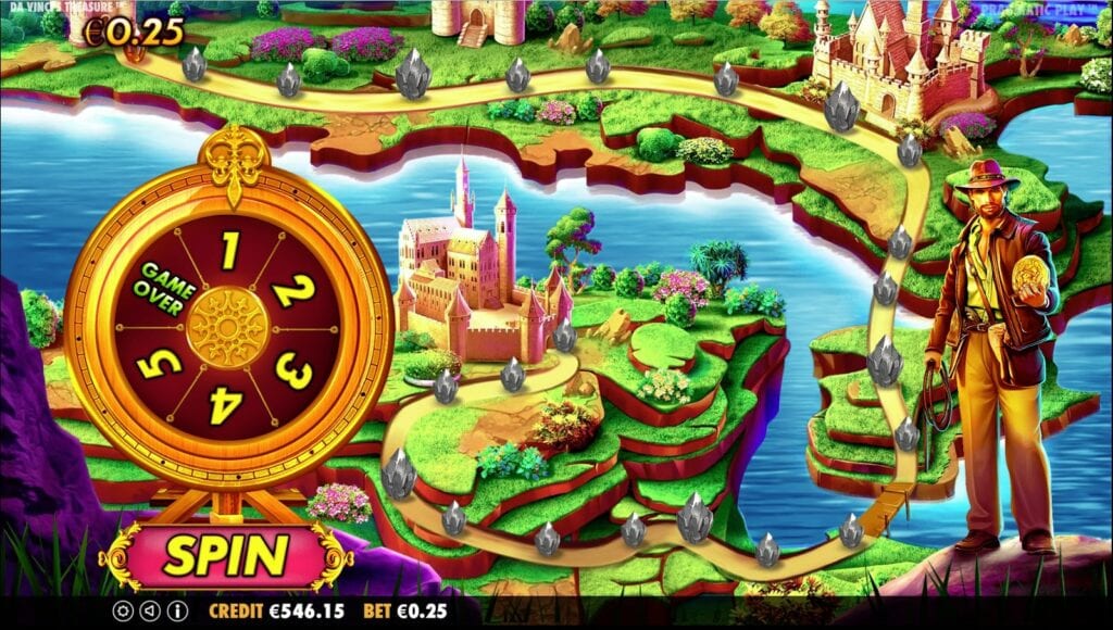 The game gives players a chance to unlock 3 bonuses. In all honesty, of all the 3 bonuses, there is only one that profoundly excites us. We are speaking of a progressive multiplier free spins bonus – a bona fide asset to this game. The reason for this is that this bonus, in its potential, features the closest match to the Da Vinci’s boundless abilities. The other two bonus features are a map quest and a prize picker which seem to represent some sort of embellishment. This is still not a bad idea as it adds a bit of action to the game.