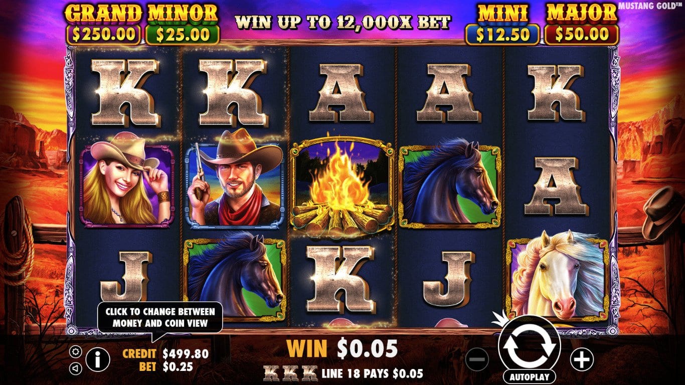 All in all, free spin retriggers add up to the potential payout of 12 000 x your wager,  suggesting that the Pragmatic team meant business in the Mustang Gold slot! And this is what bribes us most to dive headlong into the American West world in Mustang Gold.