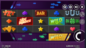 One of the greatest appeals of the slot comes from the Sidewinder feature. To elaborate on this, the base game action takes place on a regular 5×3 reel matrix. However,  top wilds and bottom wilds in specific positions on the reels trigger upper and bottom sidewinders, respectively. Each sidewinder has a 3 reel by 1-row layout. One sidewinder activated rewards you with 576 unique ways to form winning combos, whereas two sidewinders activated simultaneously provide you with 1125 ways.