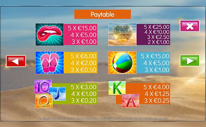 Like all of the other Microgaming releases, Love Island is fully compatible with all mobile devices. You should, therefore, be able to enjoy it on the move, even when you are still at the office, at the bus station or waiting in line to make a payment.