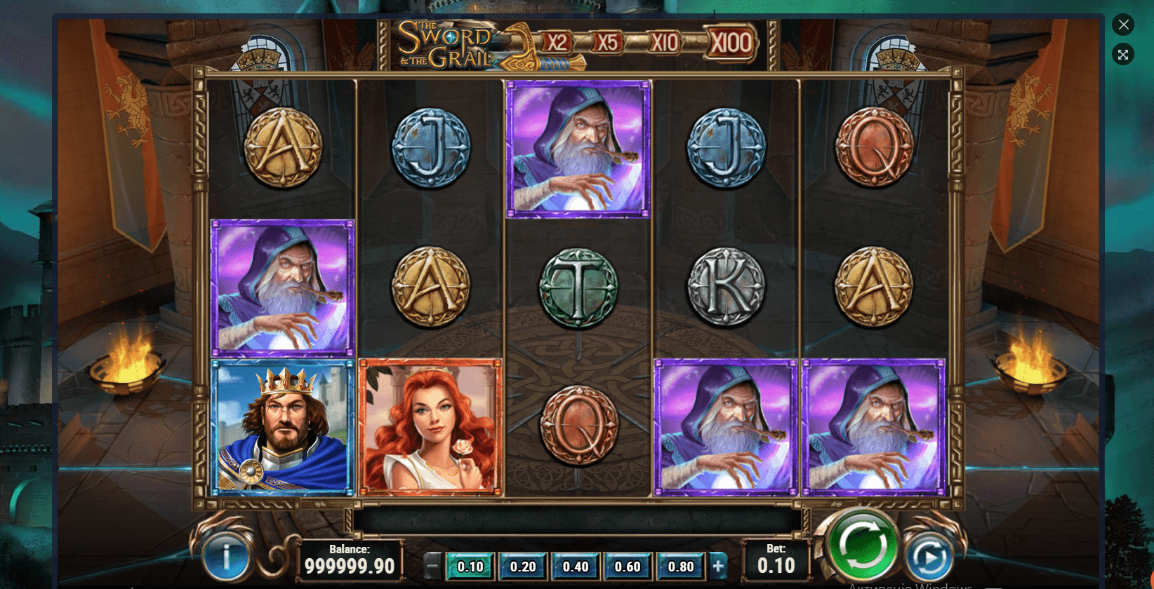 • Level 3: collect another 5 Excalibur swords to unlock 5 more free spins along with a 10x multiplier